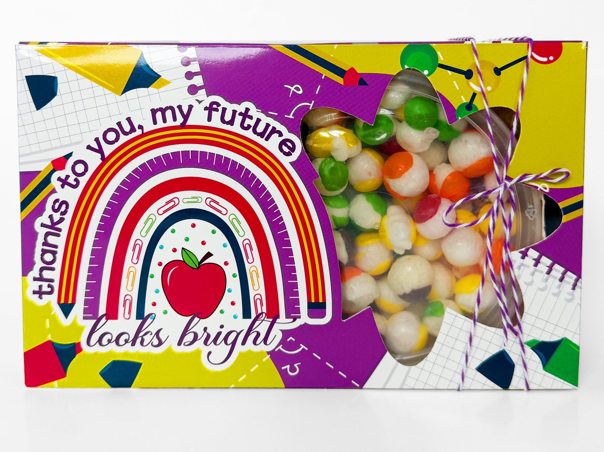 Available in 6 fun gift box designs—ready to gift and guaranteed to make teachers smile!